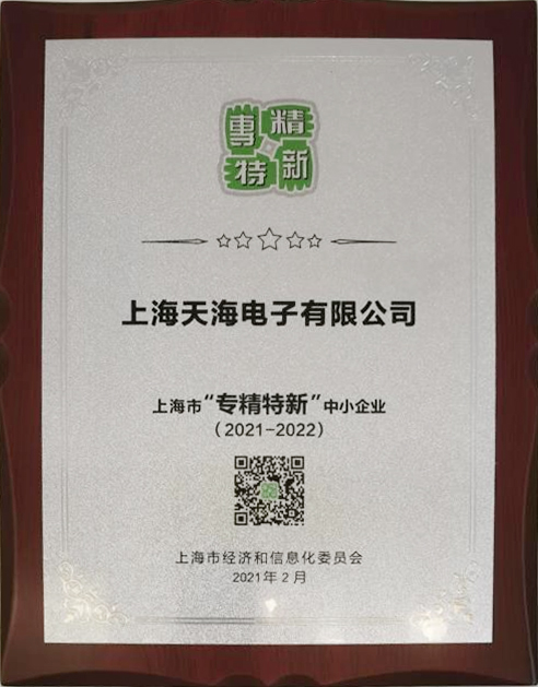 2021年公司全資子公司上海天海電子有限公司被上海市經濟和信息化委員會評為2020-2021年度上海市“專精特新”中小企業。上海天海同時也是上海市科技小巨人企業、國家高新技術企業。